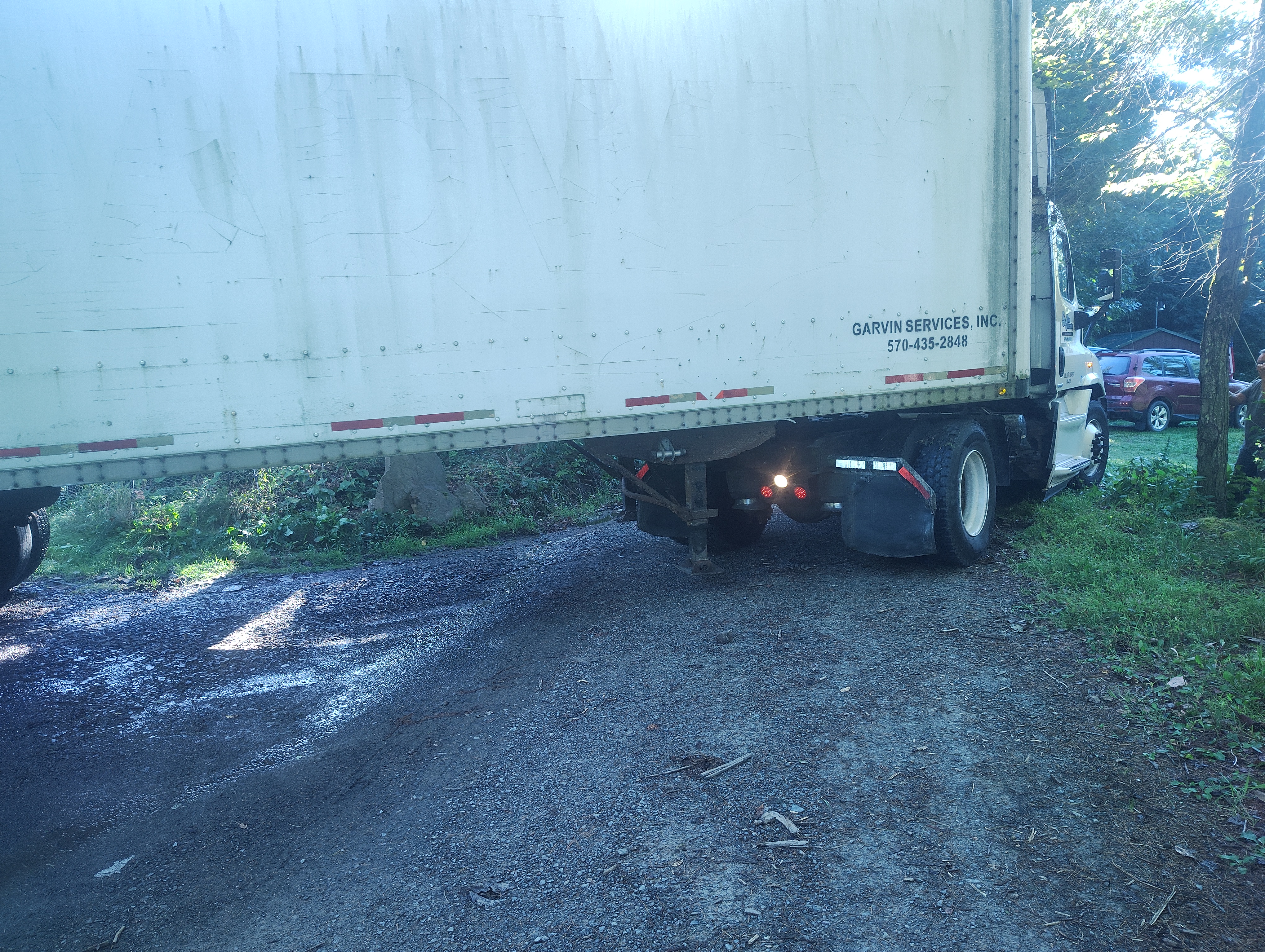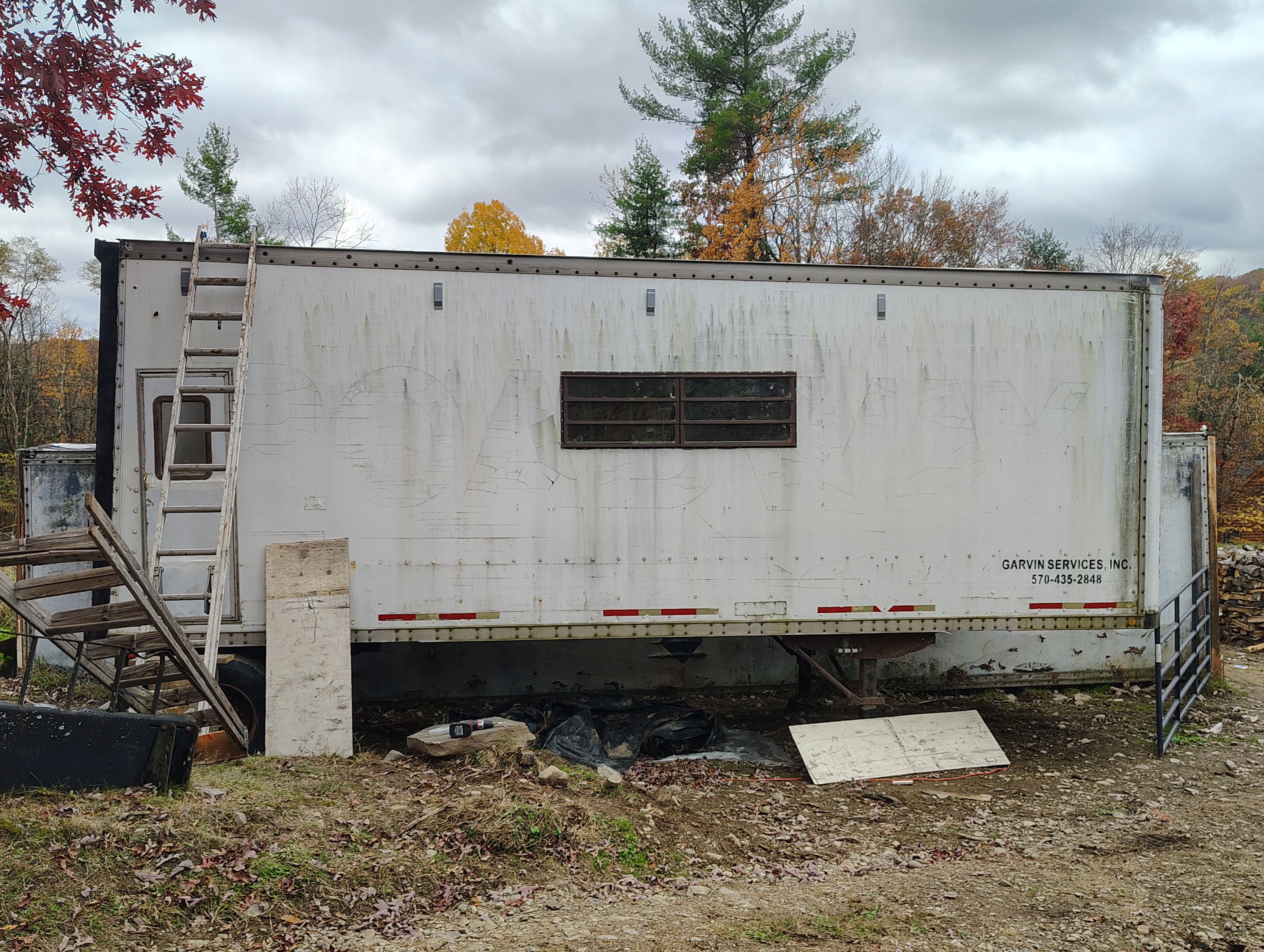 I narrowed my search to these two options and honestly would have gone with either in the event that a good deal appeared. Several sellers were contacted, but in the end, I found success with a tire recycling company roughly 2 hours south of the farm. They had a host of single-axle dry-van 28′ ‘pup’ trailers for sale due to the company updating its fleet. One trailer in particular was listed for just $1,000 because it had been out of service for a while and was used for storage. That meant it was a little rough around the edges and not quite road-worthy—not a problem for me. My searching eyes also quickly noticed that this trailer was equipped with a metal floor, in addition to a metal ceiling and front wall. Thinking that would help preserve the trailer during the course of my usage, I jumped on it. The company charged me 300 for delivery and parked it right where we needed it. The driver was even helpful enough to let us tow him up the last 30 feet or so when he couldn’t make it.