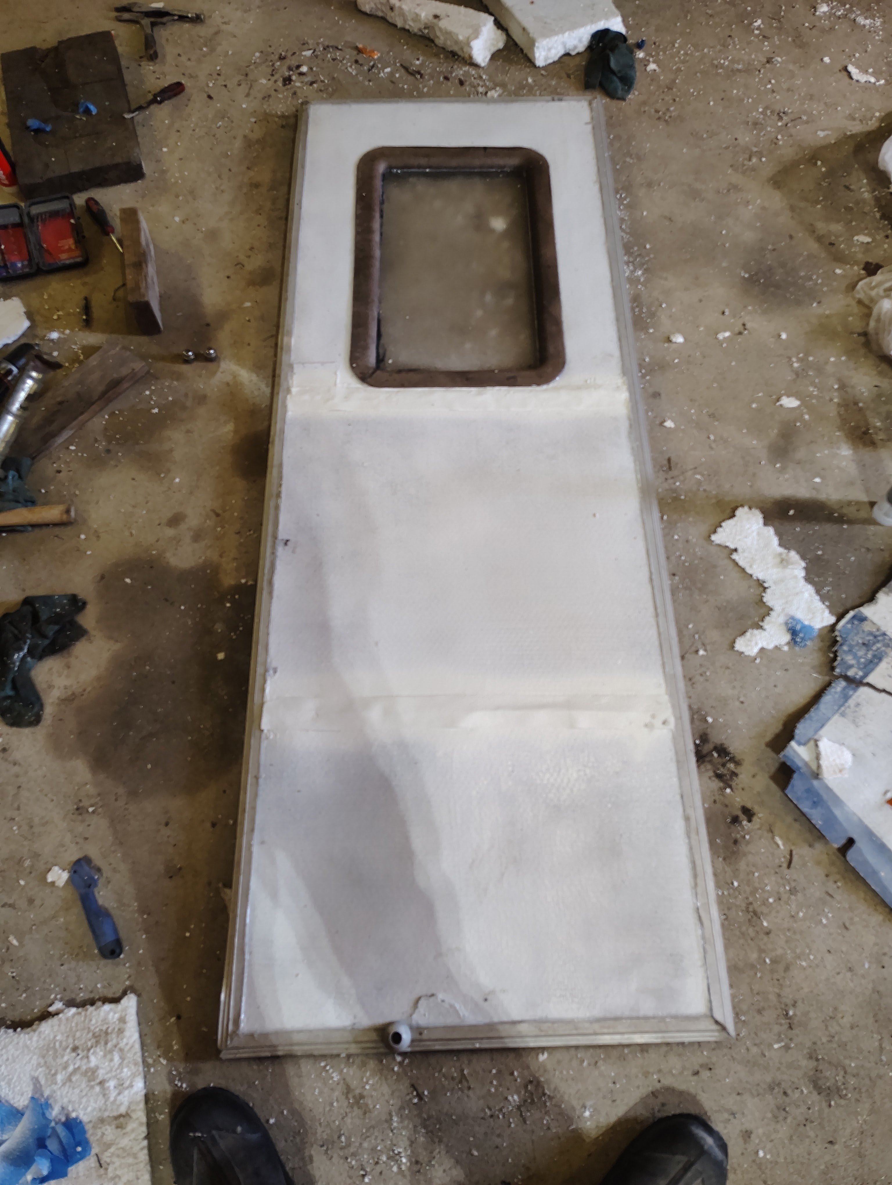 The door I had needed some repair and I was determined to do so without spending any money. I spent longer than I would like to admit replacing a rotted section of the outer door frame, about half of the insulation inside the door, and some of the outer fiberglass panel. I did it all with scrap materials, and it cost me nothing. Every joint and seam on the door was sealed up, and the door looked pretty good, if I do say so myself. Then I mated my door with the good frame I had, closed the door, and… it didn’t fit.