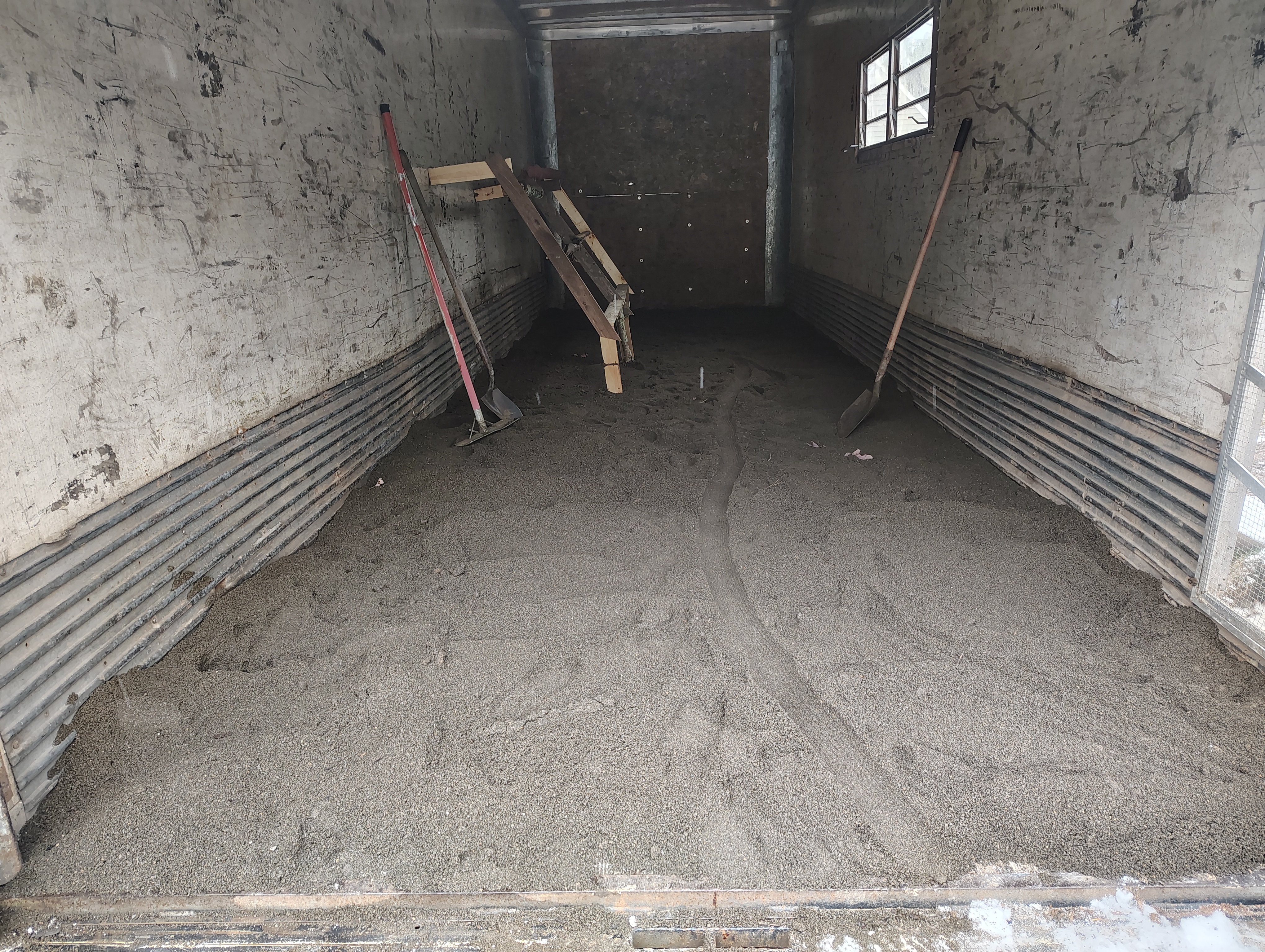 With that mountain climbed, I contacted a nearby friend with a dump truck for some assistance. I had decided to try out river sand for bedding in my coop, and being near the Susquehanna River, we have a sand pit right outside town. The sand cost me around forty bucks for a load, which I thought was a pretty good deal. One load proved to be plenty, and my father and I had it all shoveled into the trailer the same day. We ended up with a layer about 2-3 inches deep across the whole floor.