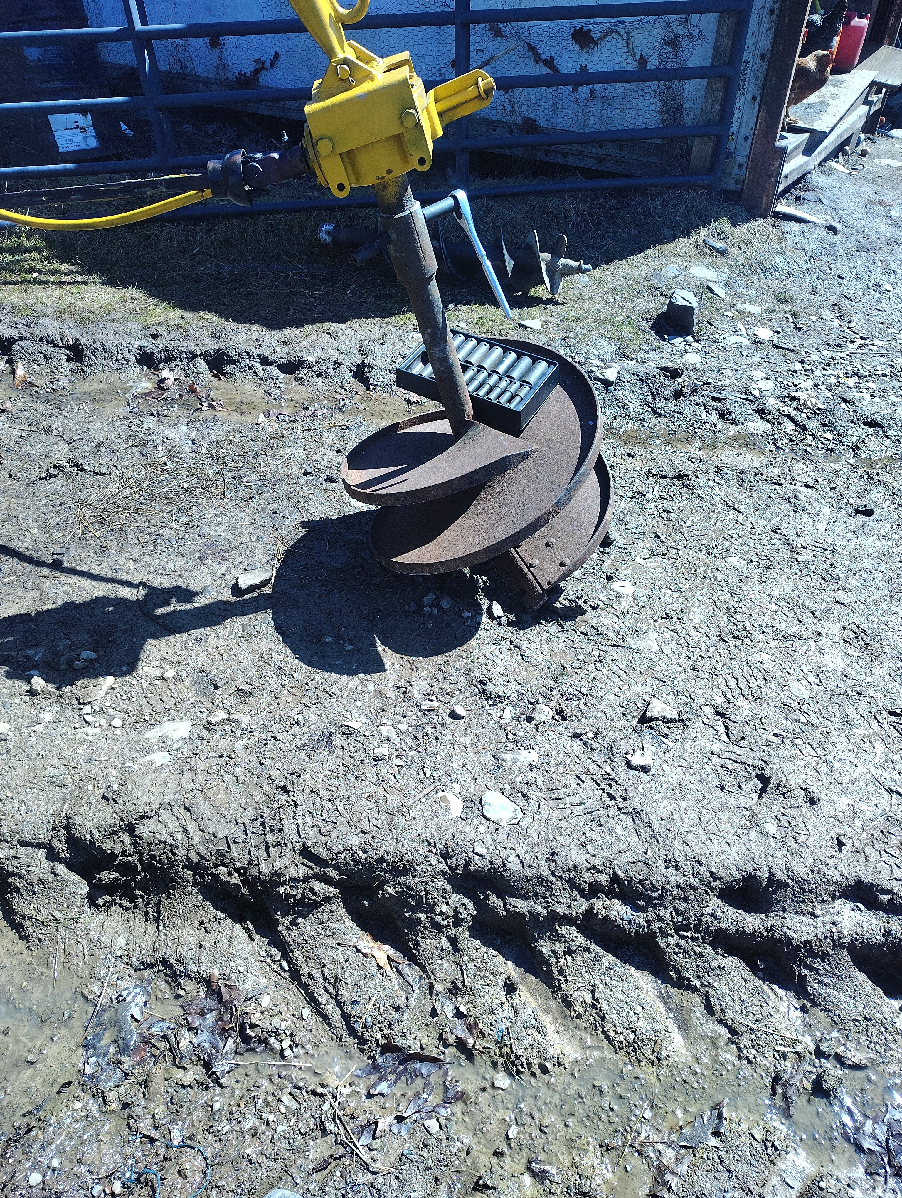 Powered augers come in many forms, including handheld motorized types, skidsteer attachment style, and those made for a 3-point hitch. A 3 point-hitch, of course, is the style of attachment hookup found on the back of all modern tractors. It seems just about anything can be found in a 3-point hitch variation, and that includes post hole diggers. Brand new, one of these attachments could be had for around $500-$600, but that included no bits. The bits themselves could be just as pricey. So I turned to my old friend, Facebook Marketplace. Several reasonably priced diggers could be found nearby, but most came with bits in the size range of 6-10.” I was looking for something bigger, something that could knock out each required hole in one shot.